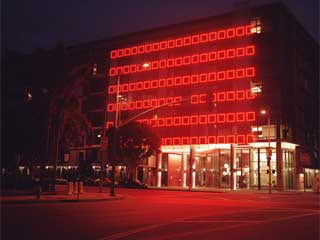ING银行,布鲁塞尔建筑物 ING银行,布鲁塞尔建筑物。 2000-2001. 窗口适当位置的色的照明,受控由计算机,转换了它的立面成也显示器,能调用不仅相片,但是动画。