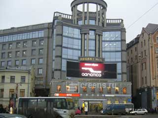 | LED屏幕在购物中心在市斯塔夫罗波尔 (俄国) | LED屏幕在董事Regent-Hall门面在圣彼得堡 |